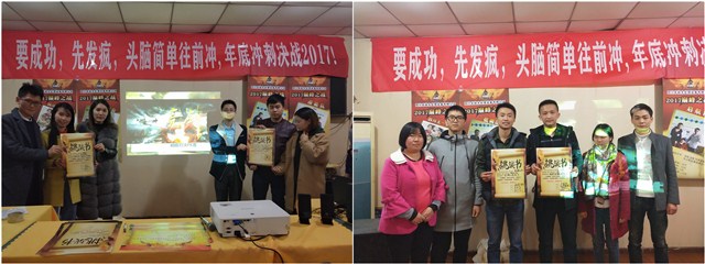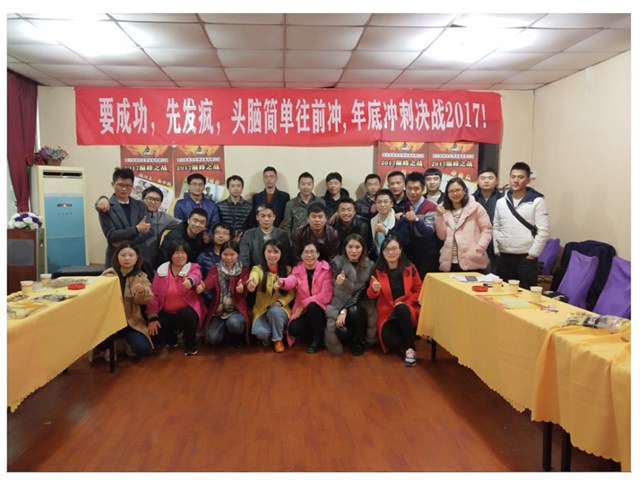 我們的口號(hào)是:“要成功,先發(fā)瘋,頭腦簡(jiǎn)單往前沖,年底沖刺決戰(zhàn)2017!”