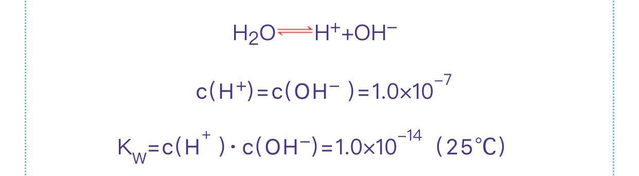 ③電導(dǎo)率是零的純水(表示離子濃度)是不存在的,因為技術(shù)上,無法完全去除掉水中所有離子,尤其考慮到下列水的解離平衡: