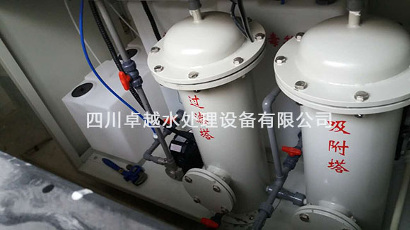 4、活性炭脫色裝置:用活性炭的吸咐能力進(jìn)一步深度處理,去除水中的色度和異味等。確保出水達(dá)到排放標(biāo)準(zhǔn).